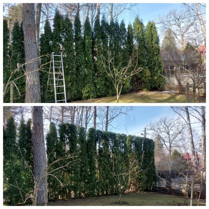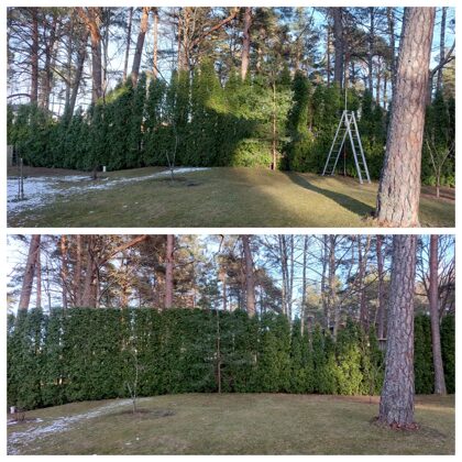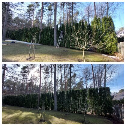 Skujeņu un lapu kokaugu kopšana un veidošana.